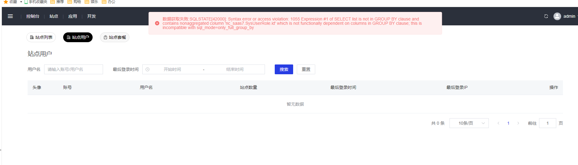 当数据库启用严格模式的情况下,页面会出现数据库报错问题,如下图报错信息