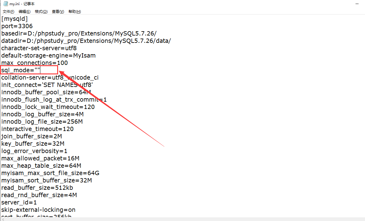 打开my.ini文件,在文件中添加sql_mode='' 保存即可。
