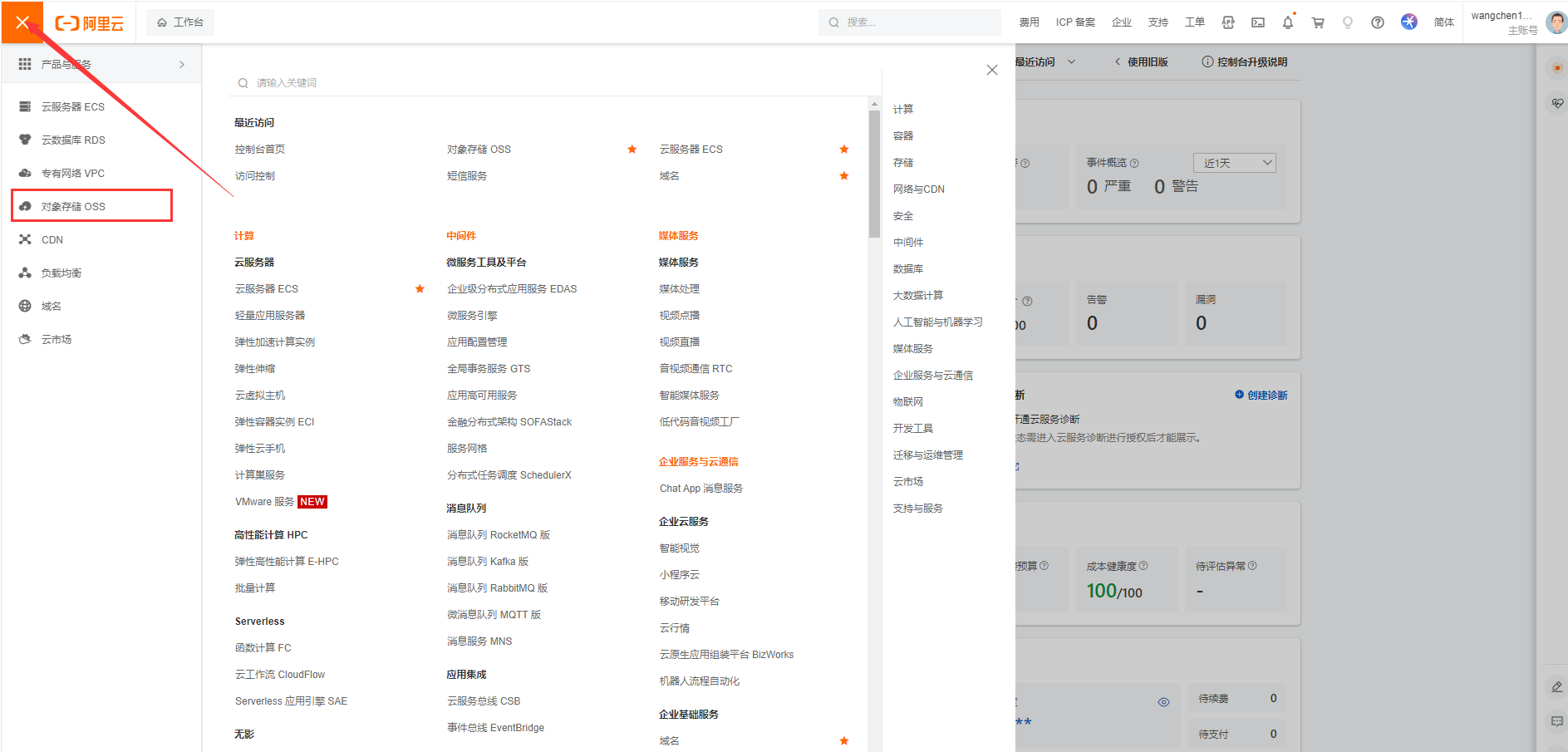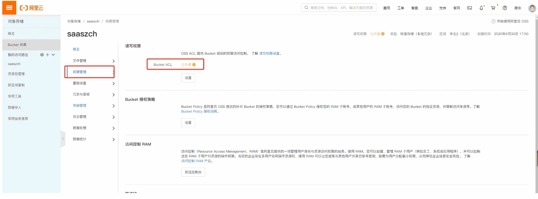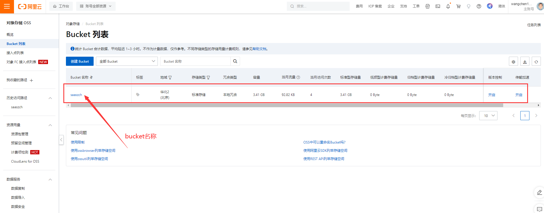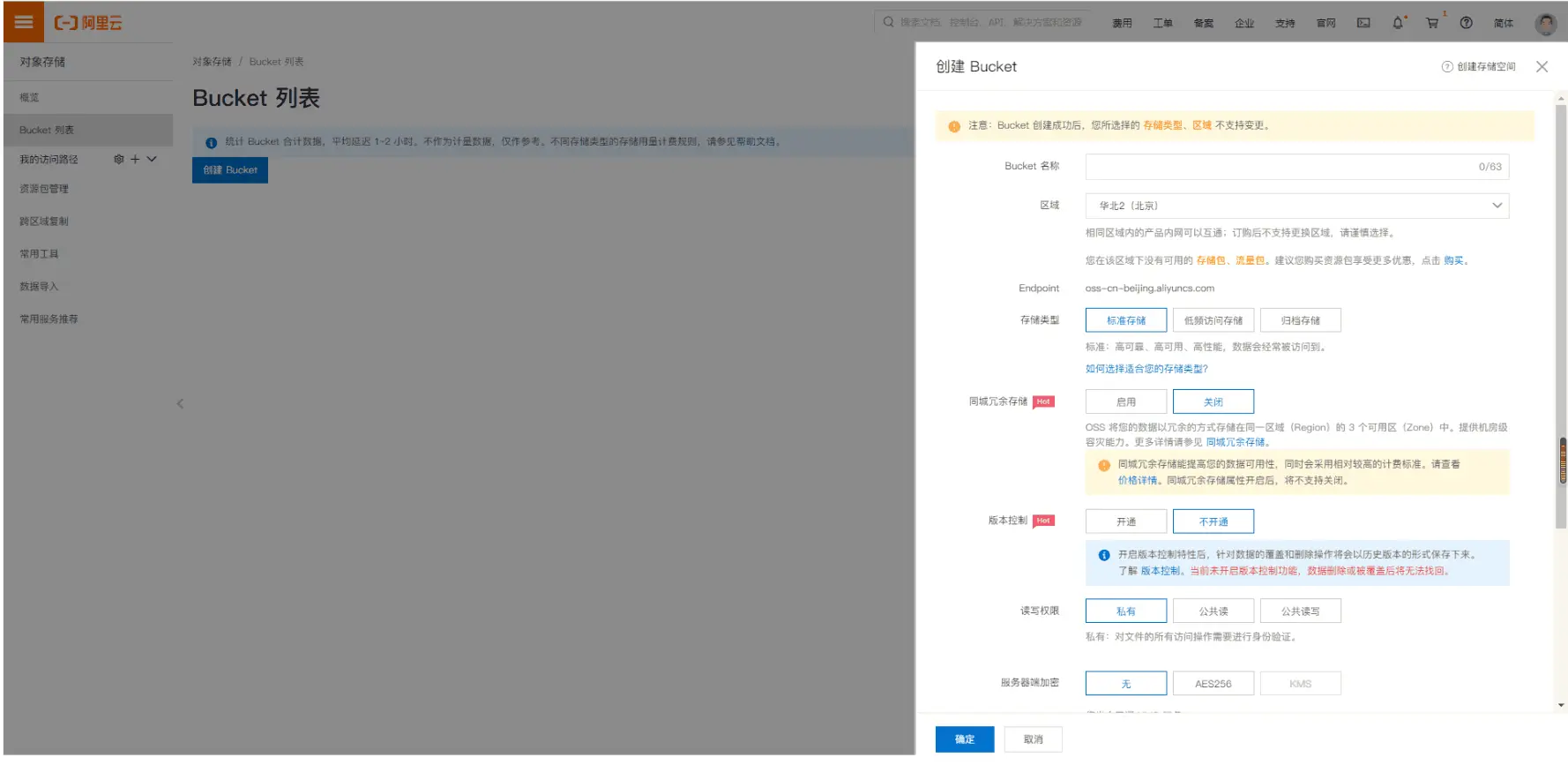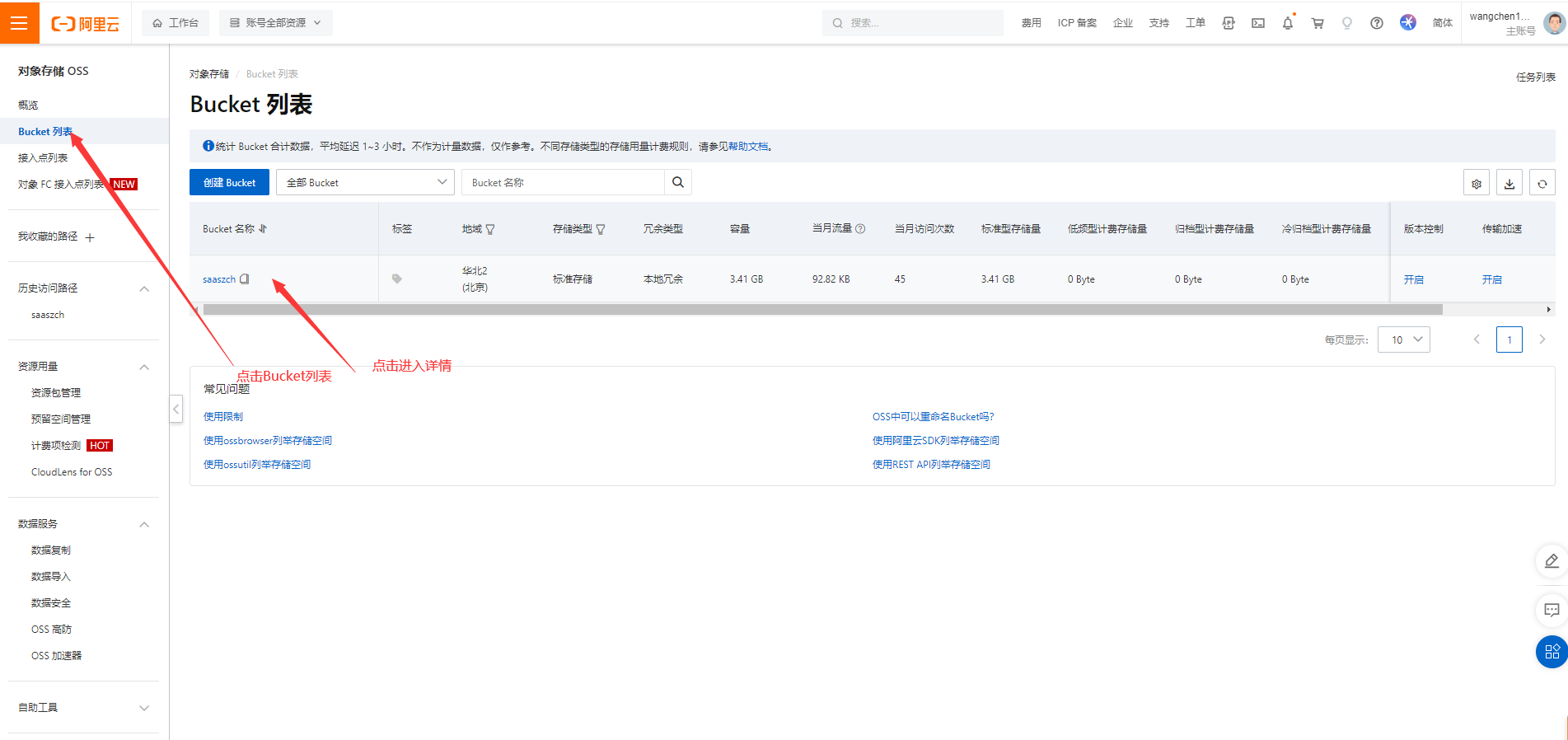 登录阿里云,进入控制台,找到对象存储oss,点击创建Bucket列表