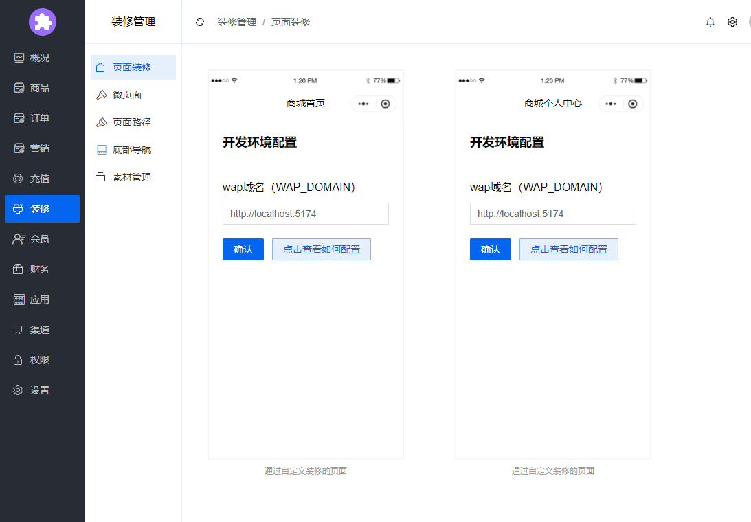 四、将编译出来的地址填写到页面装修域名配置中,不需要写后边的wap,只保留前部分即可。(例:http://localhost:5174)