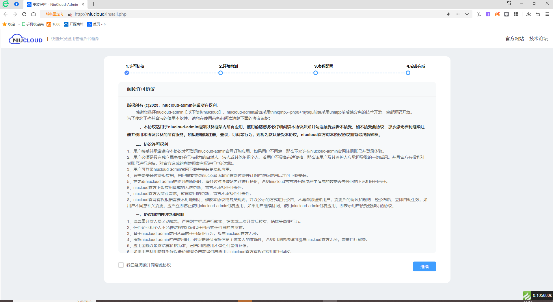 六、浏览器访问域名,即可进入安装页面,整体流程如下图所示: