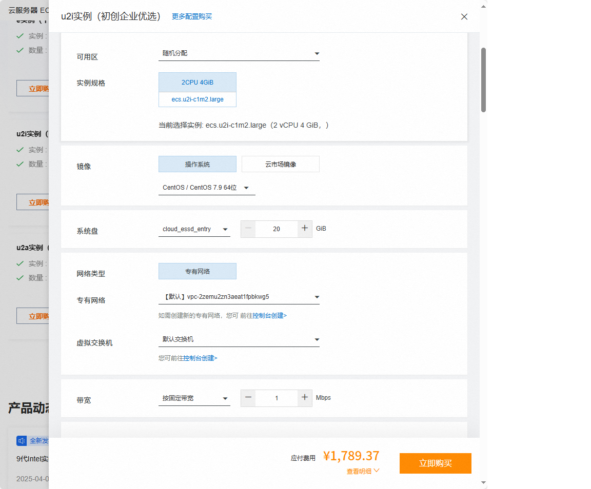 点击实例类型后的 立即购买,进入配置页面: