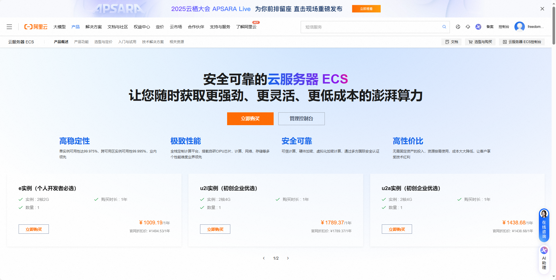 访问阿里云ECS产品页面