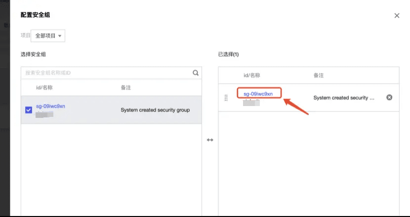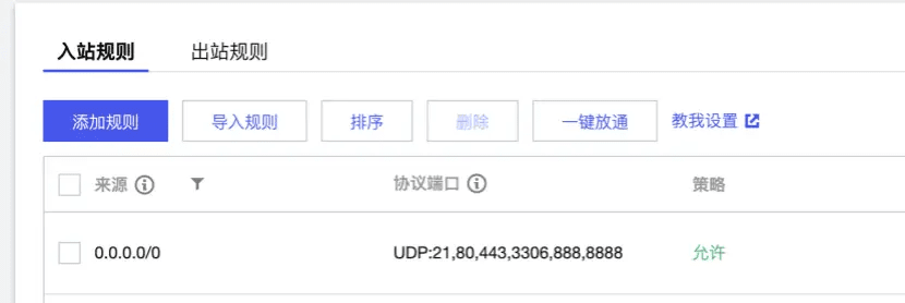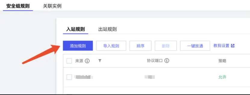 1. 登录腾讯云服务器,点击安全组名称,进入安全组配置
