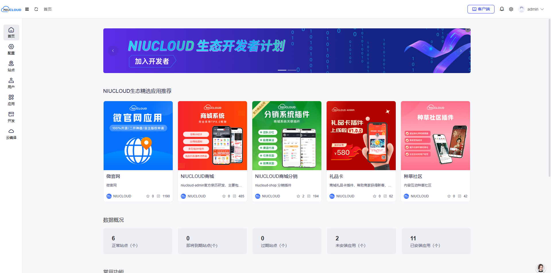 目前NIUCLOUD生态开发者入驻近千人,各行业应用插件正在陆续上线中...