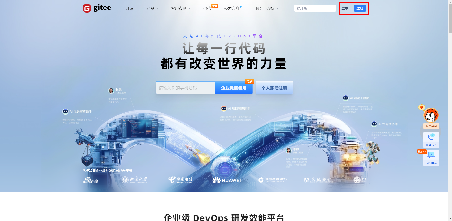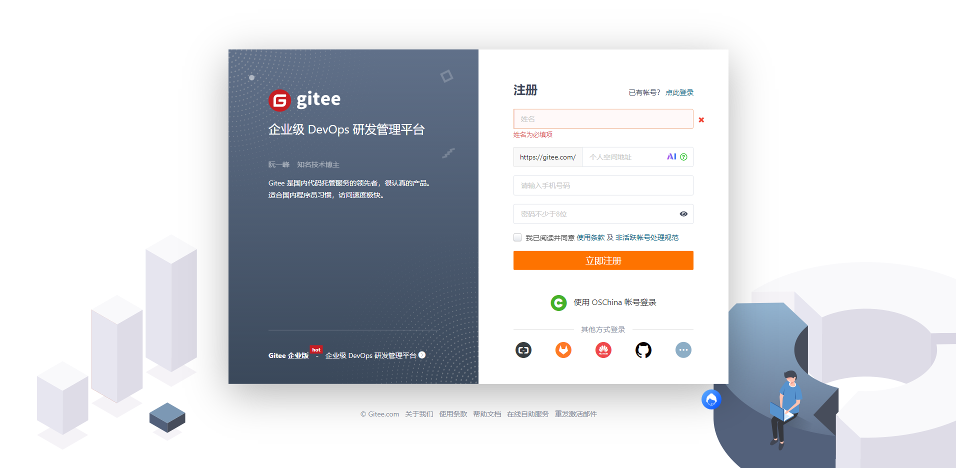 首先需要注册 Gitee 账号,若已有账号可直接登录。