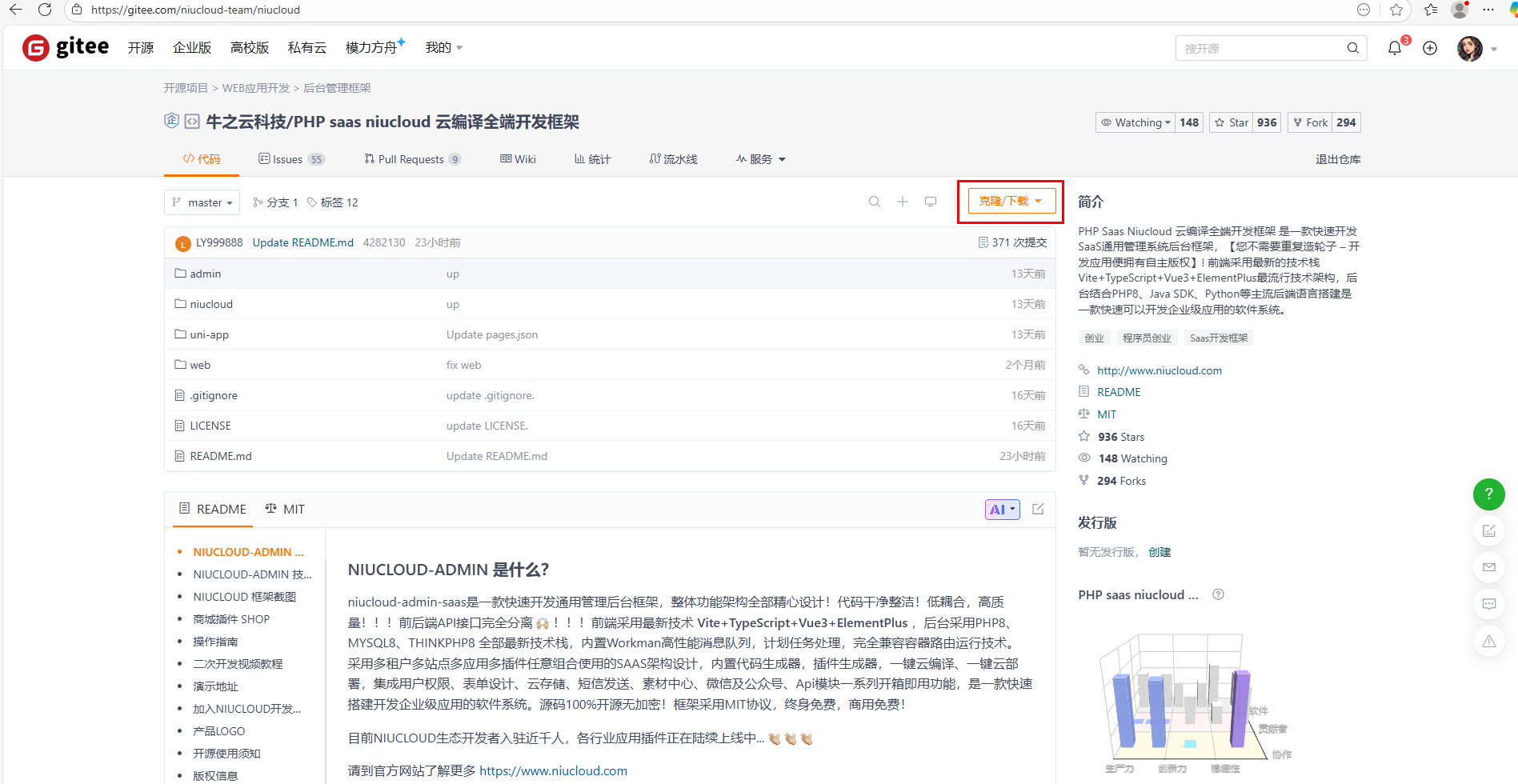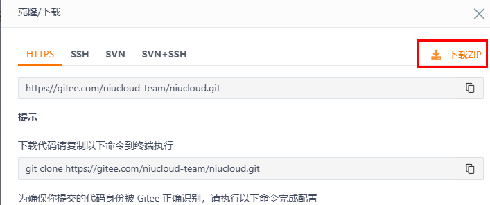 打开浏览器,输入项目地址:https://gitee.com/niucloud-team/niucloud.git