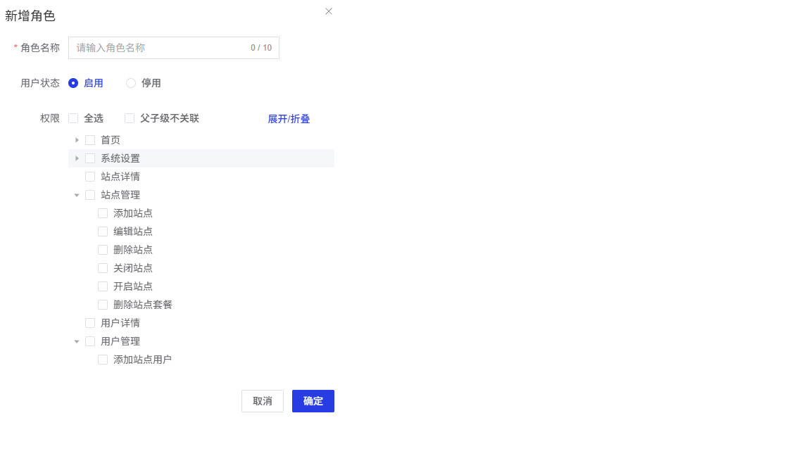父子级不关联:勾选后,父级权限和子级权限的选择状态将相互独立。