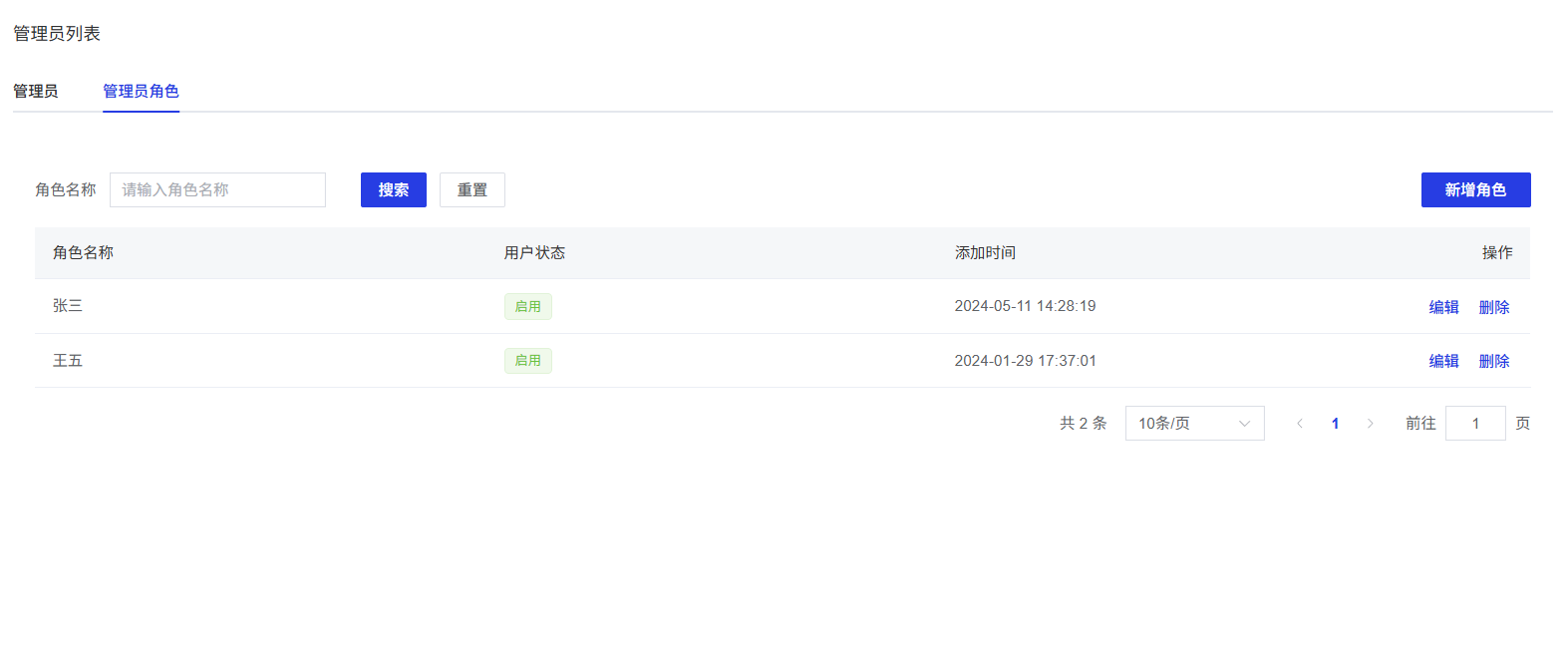 用户状态:单选按钮组,可选择角色的状态(启用/停用)。