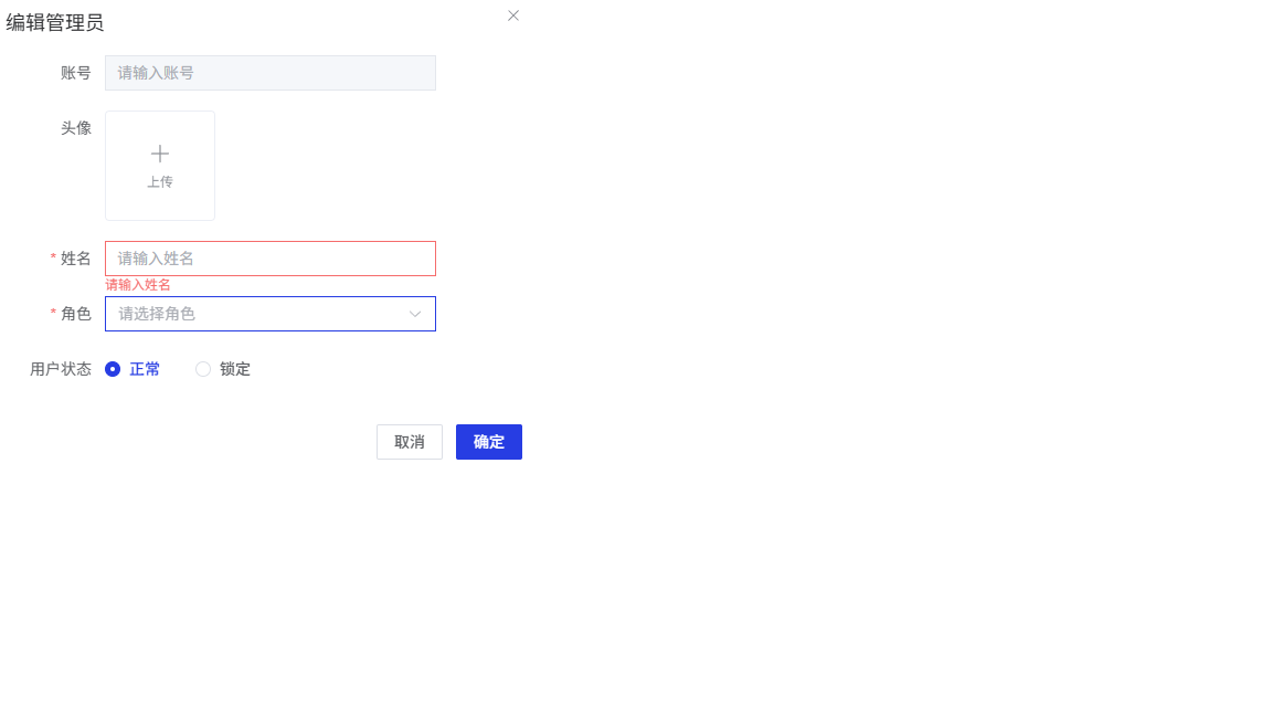 角色:必填项,通过下拉选择框可修改管理员所属角色。