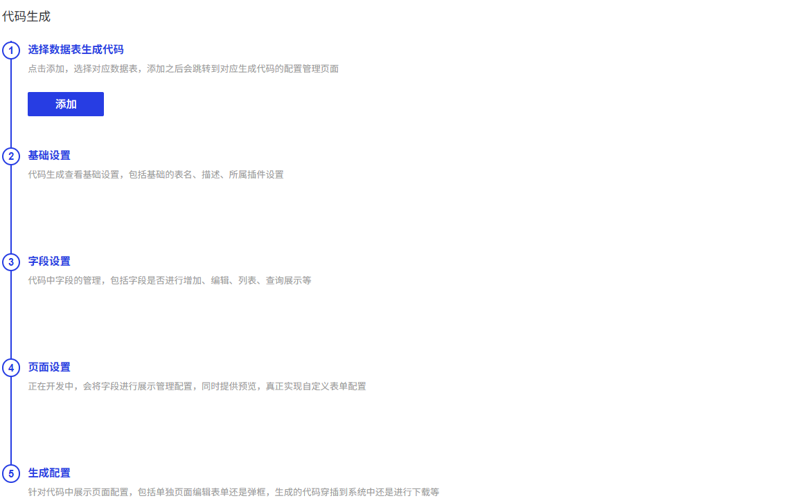 选择对应的数据表后,系统会自动跳转到该数据表的代码生成配置管理页面。