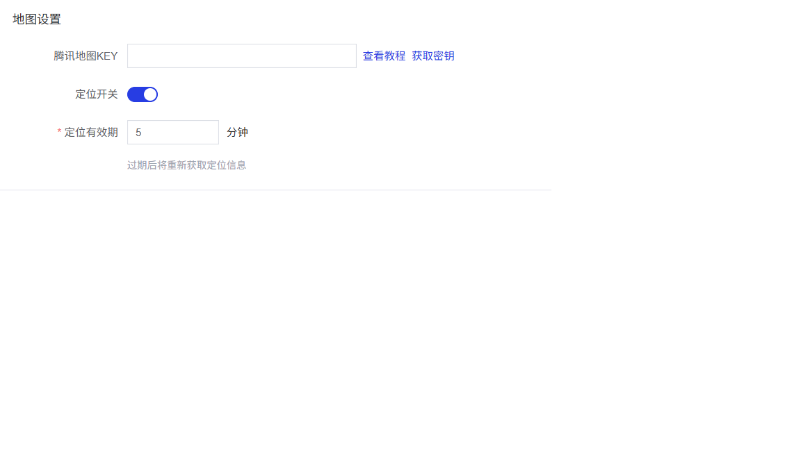 配置腾讯地图API的访问密钥,用于调用腾讯地图的各项服务。 点击”查看教程“可查看如何获取腾讯地图KEY的详细教程。 点击”获取密钥“可跳转到腾讯位置服务平台,直接申请API密钥。