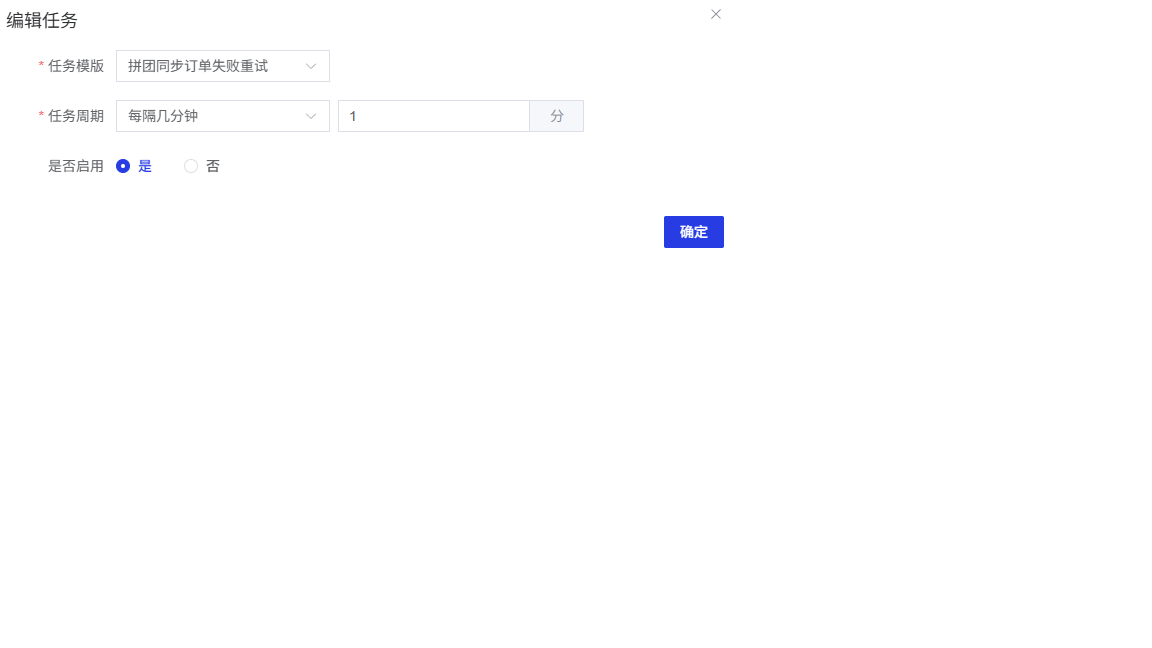 在对话框中,配置新任务的模板、执行周期和启用状态。