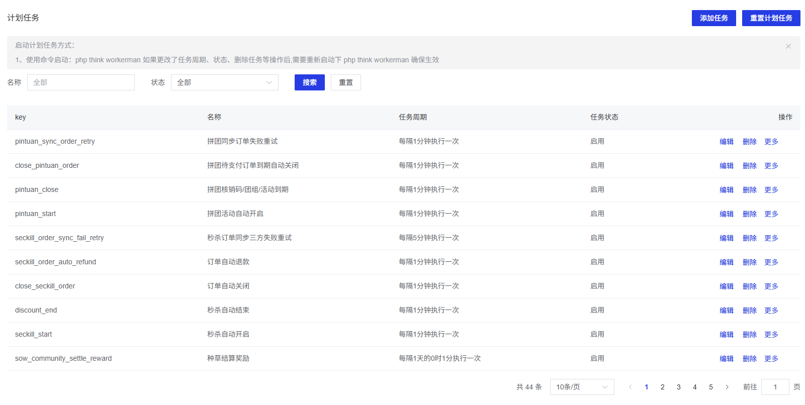 进入计划任务页面,即可查看所有计划任务的Key、名称、任务周期和任务状态。