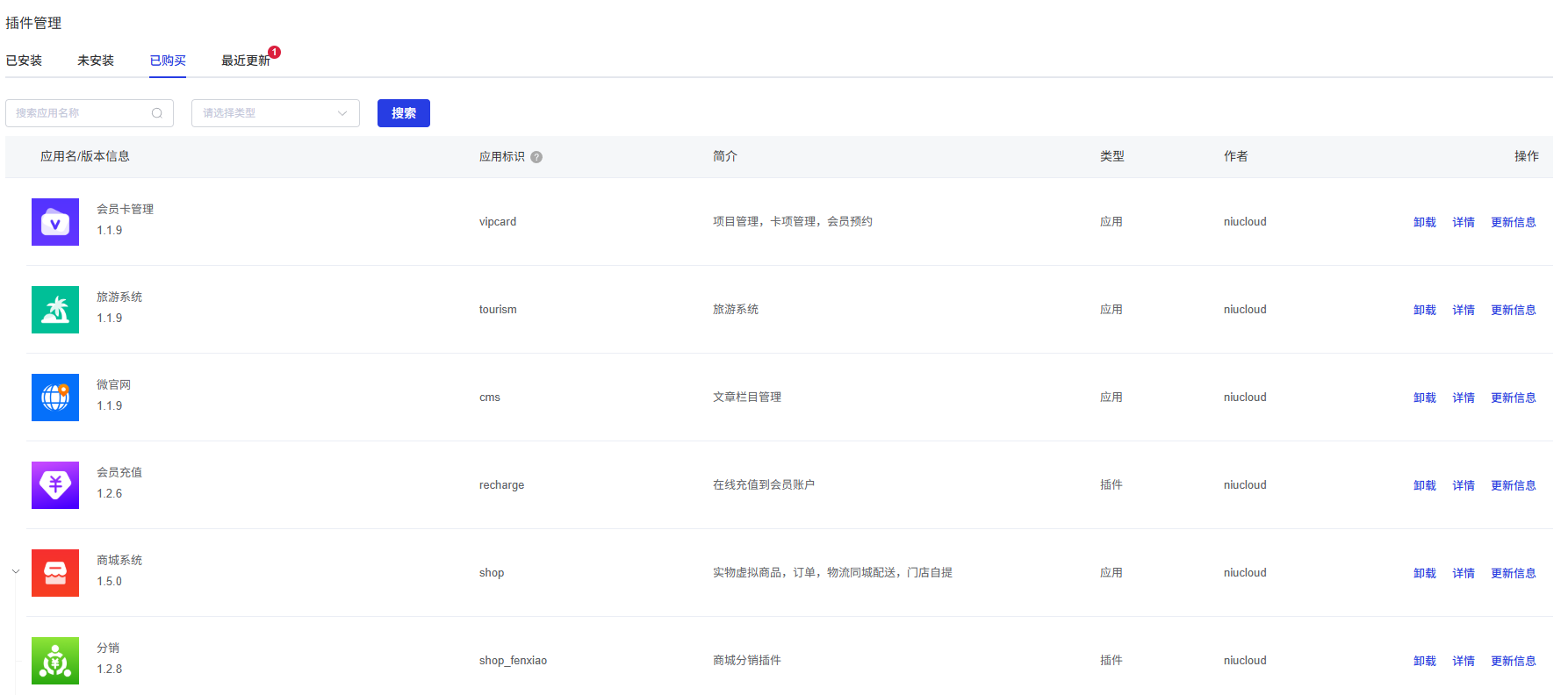 应用/插件卸载:可对要卸载的插件进行卸载操作。
