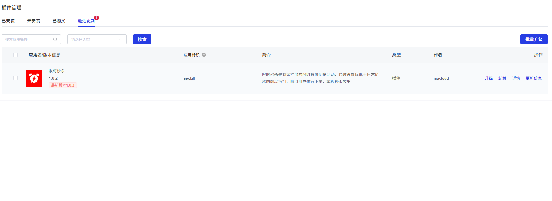 最近更新标签页用于显示所有最近有更新的插件列表。