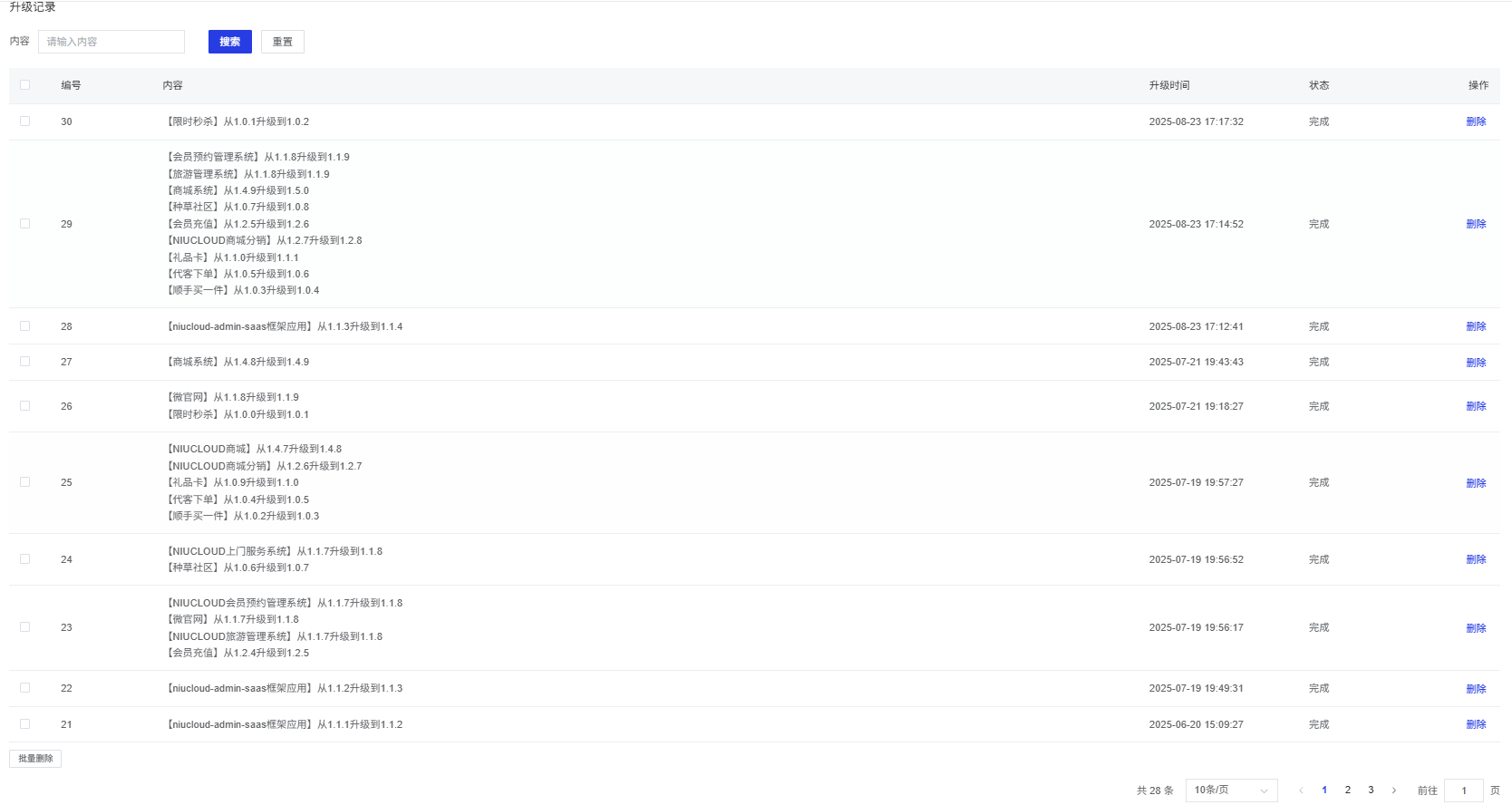 批量删除升级记录