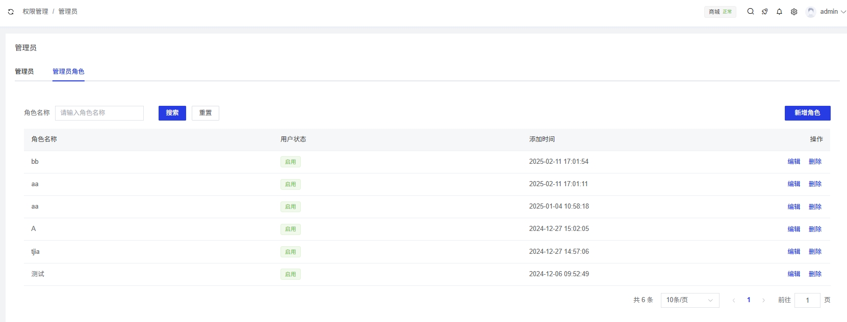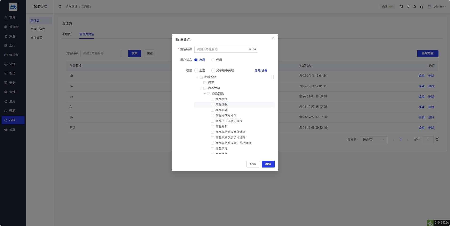 管理员角色列表操作