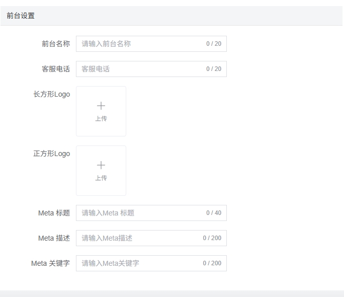 前台设置用于配置面向用户展示的前台系统的相关信息,主要包括: