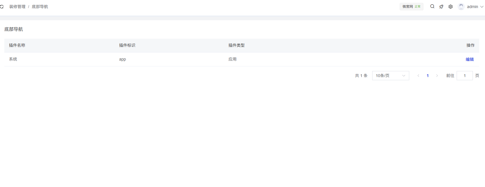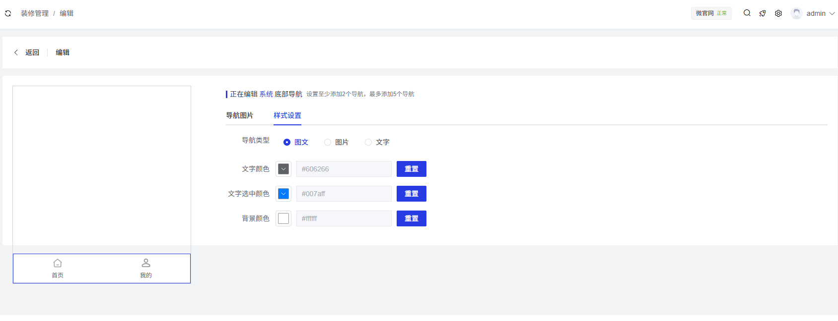 操作:提供对底部导航的编辑功能,点击"编辑"按钮可进入底部导航编辑界面。