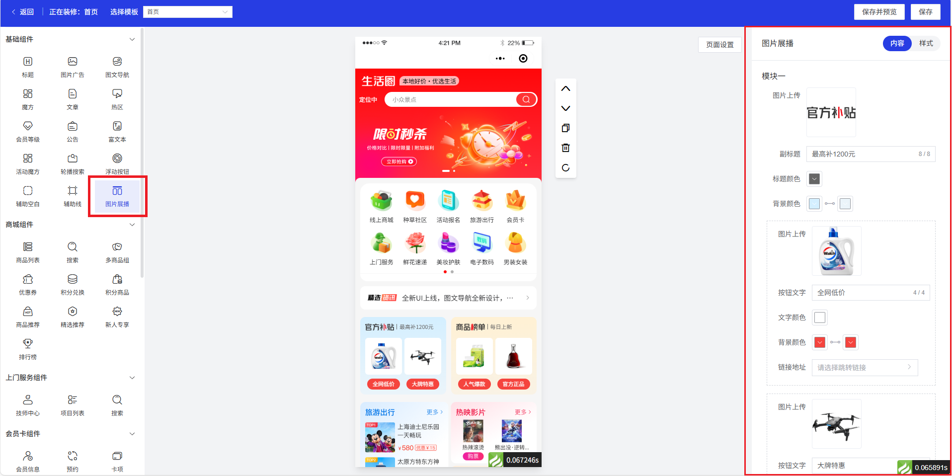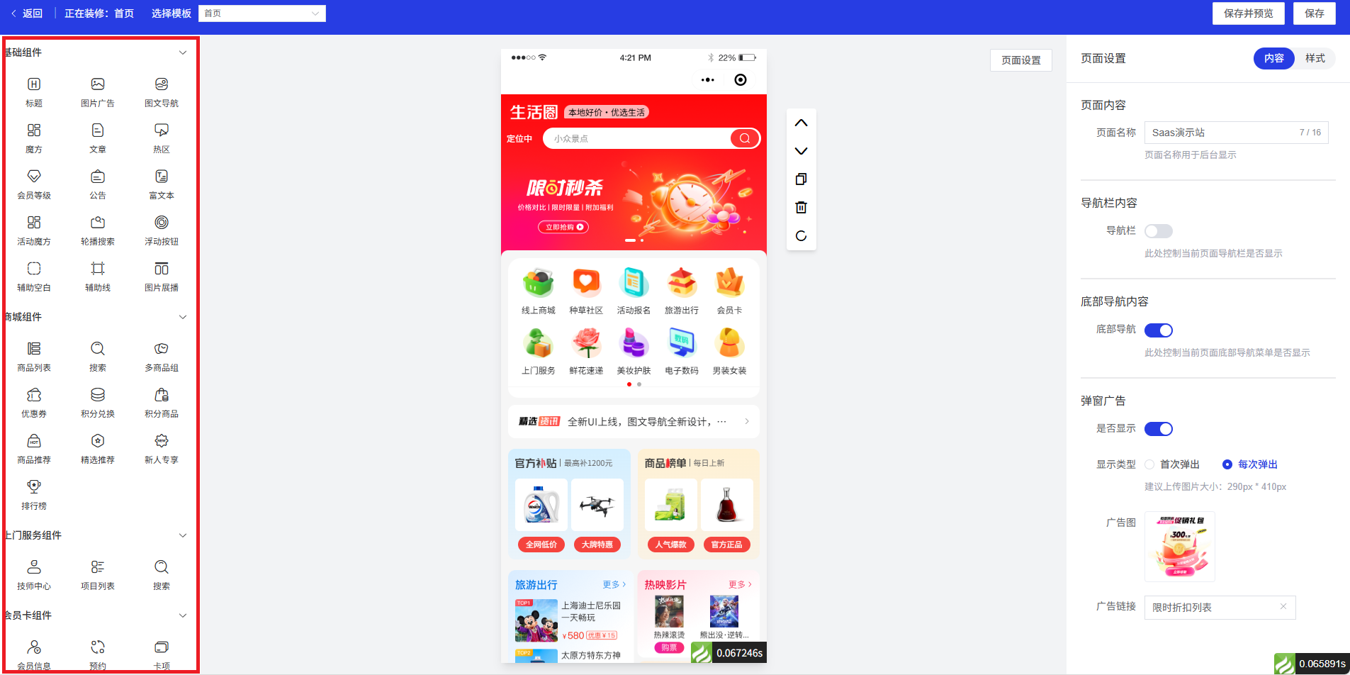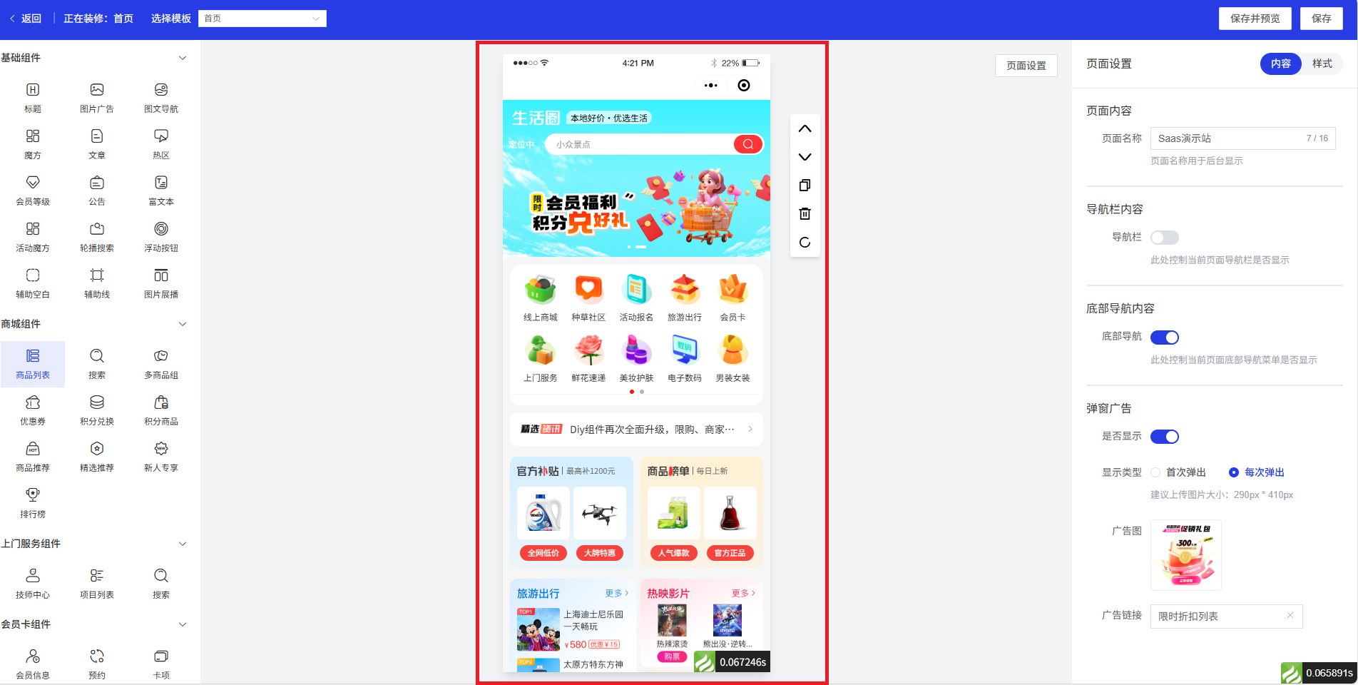 保存并预览:点击后可实时查看当前装修效果,模拟实际访问时的显示样式。保存当前装修。