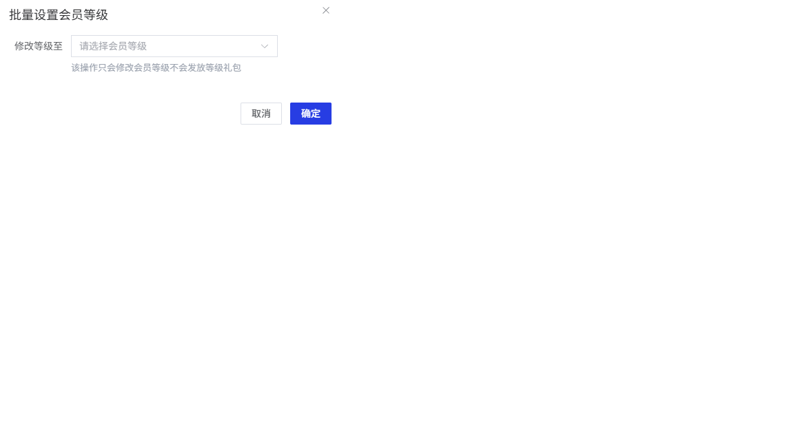 确定按钮:确认批量设置会员等级,所选等级将应用到所有选中的会员。