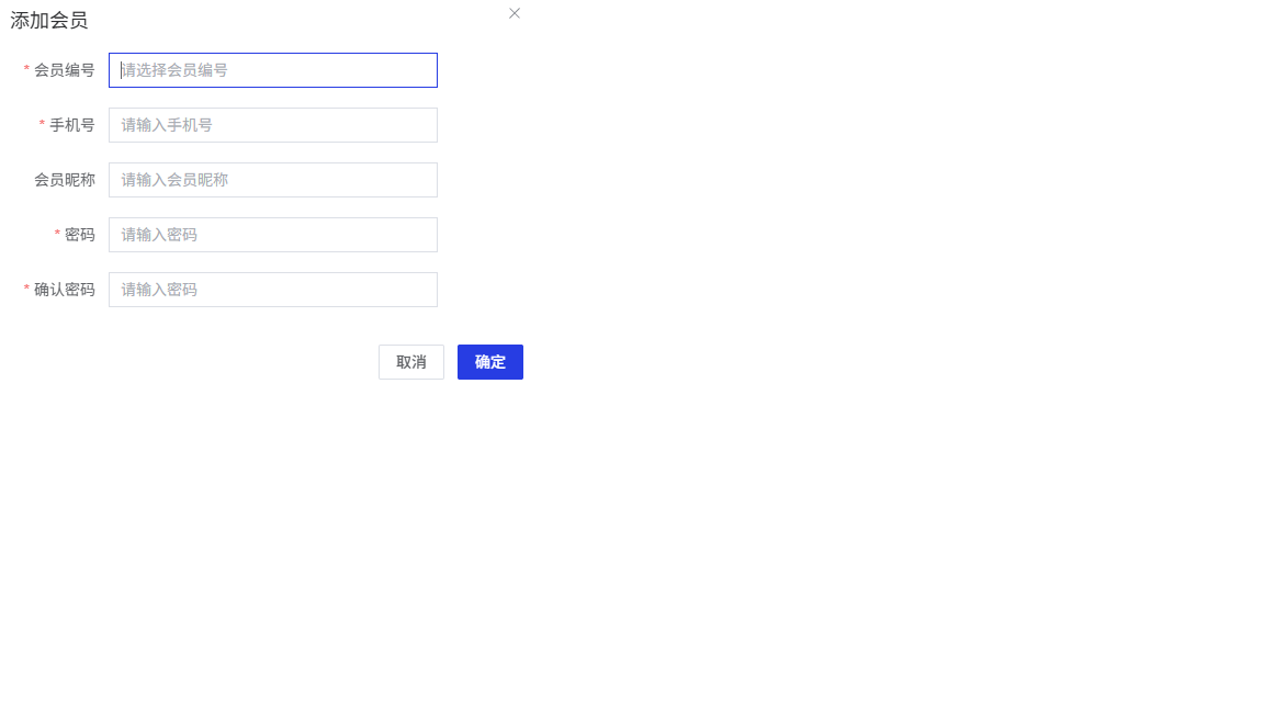 确认按钮:确认添加会员,创建成功后新会员将显示在会员列表中。