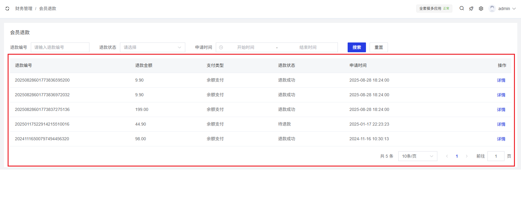 会员退款功能用于管理会员的退款申请和记录,支持查看退款状态、查询退款详情等操作,帮助用户高效跟踪和处理会员的退款流程。