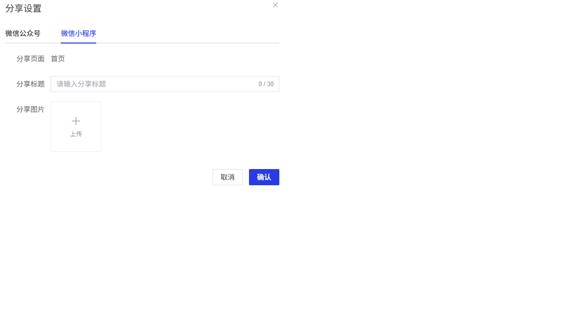 分享标题:输入分享到微信小程序时显示的标题(最多30个字符)。
