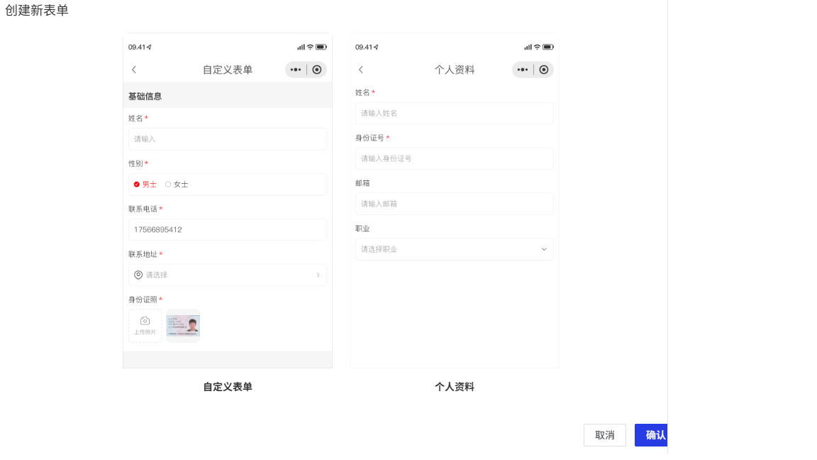 在创建表单过程中,可实时预览表单在移动设备上的显示效果。
