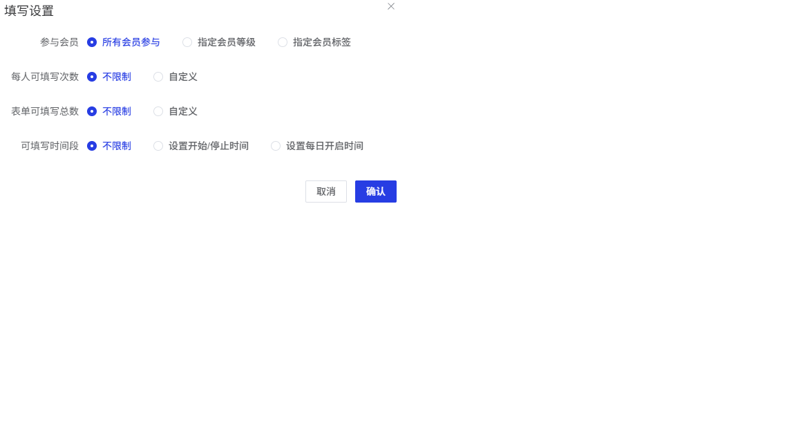 设置开始/停止时间:可设置表单的开始和结束填写时间。