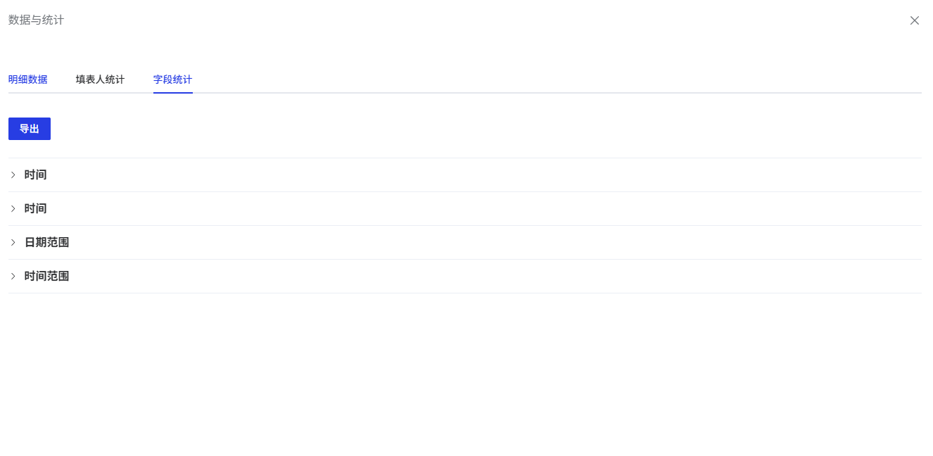 按表单字段统计数据,支持展开/收起各字段的统计信息。