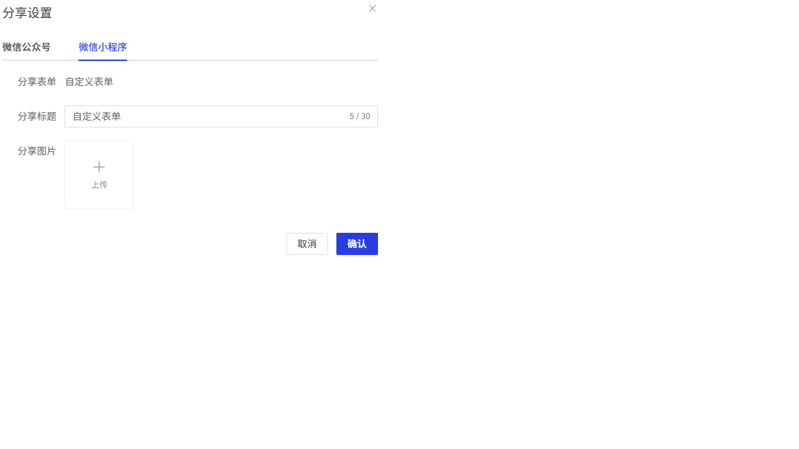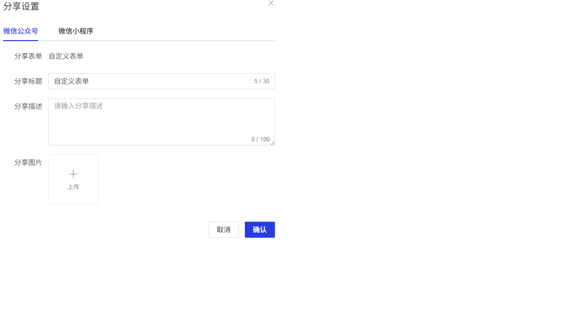 在表单列表中,点击目标表单右侧操作的"更多"-"分享设置",可配置表单分享到微信平台的展示样式。