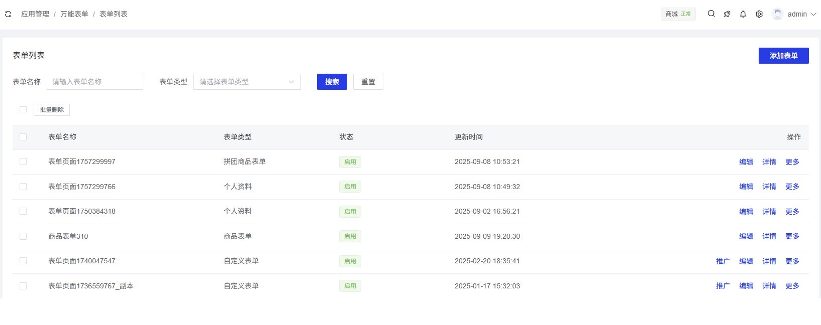 用于创建和管理自定义表单,支持多种表单类型和灵活的字段配置,方便收集用户信息。