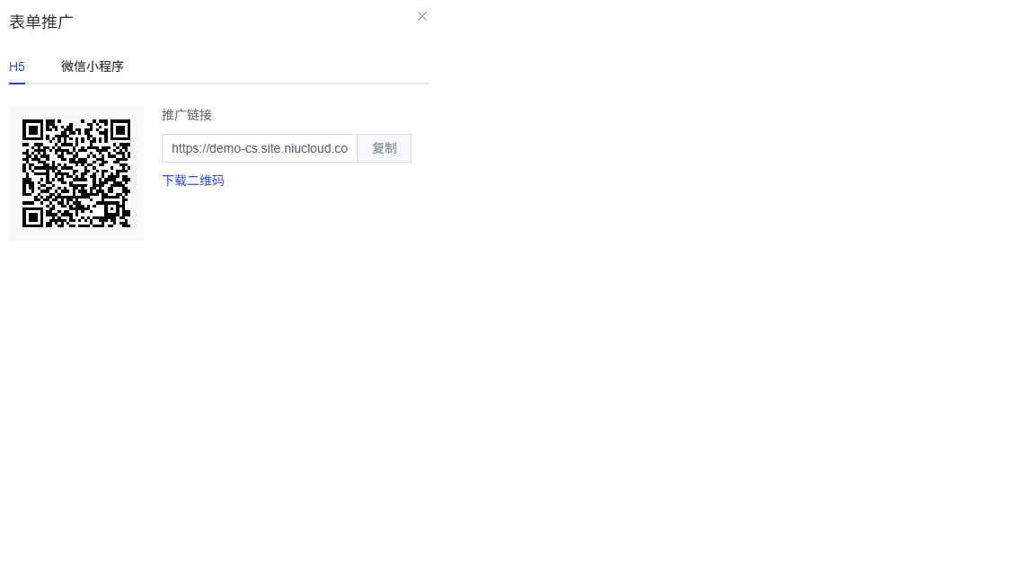 二维码:显示H5表单的二维码,用户扫码可访问表单。