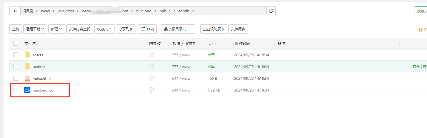 服务器环境可以直接修改编译包,修改 niucloud/public/admin 下的 ico 文件。无需编译,修改完成后,强刷浏览器页面即可生效