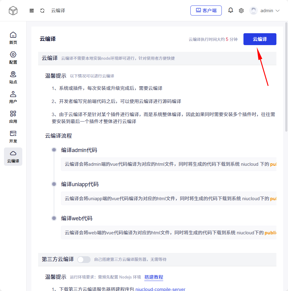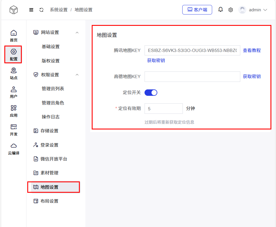 站点和平台端都需要写 key,配置完成后需要云编译