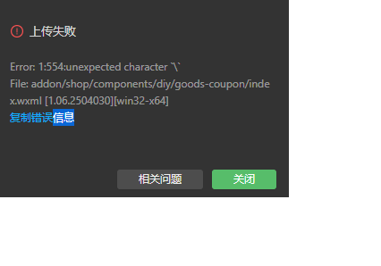 小程序开发工具代码上传失败问题