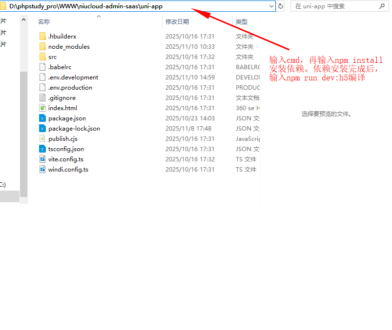 填写好配置文件后,开始执行编译命令。先在指定目录下执行命令,编译 h5