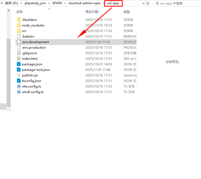 打开 uni-app 下的 .env.development 配置文件
