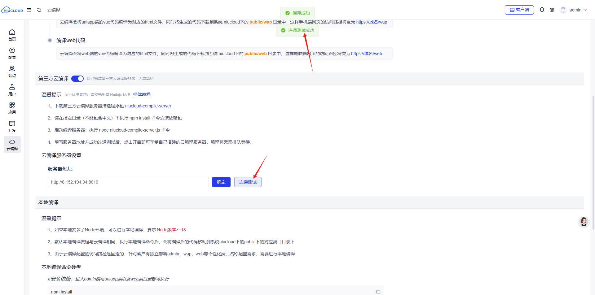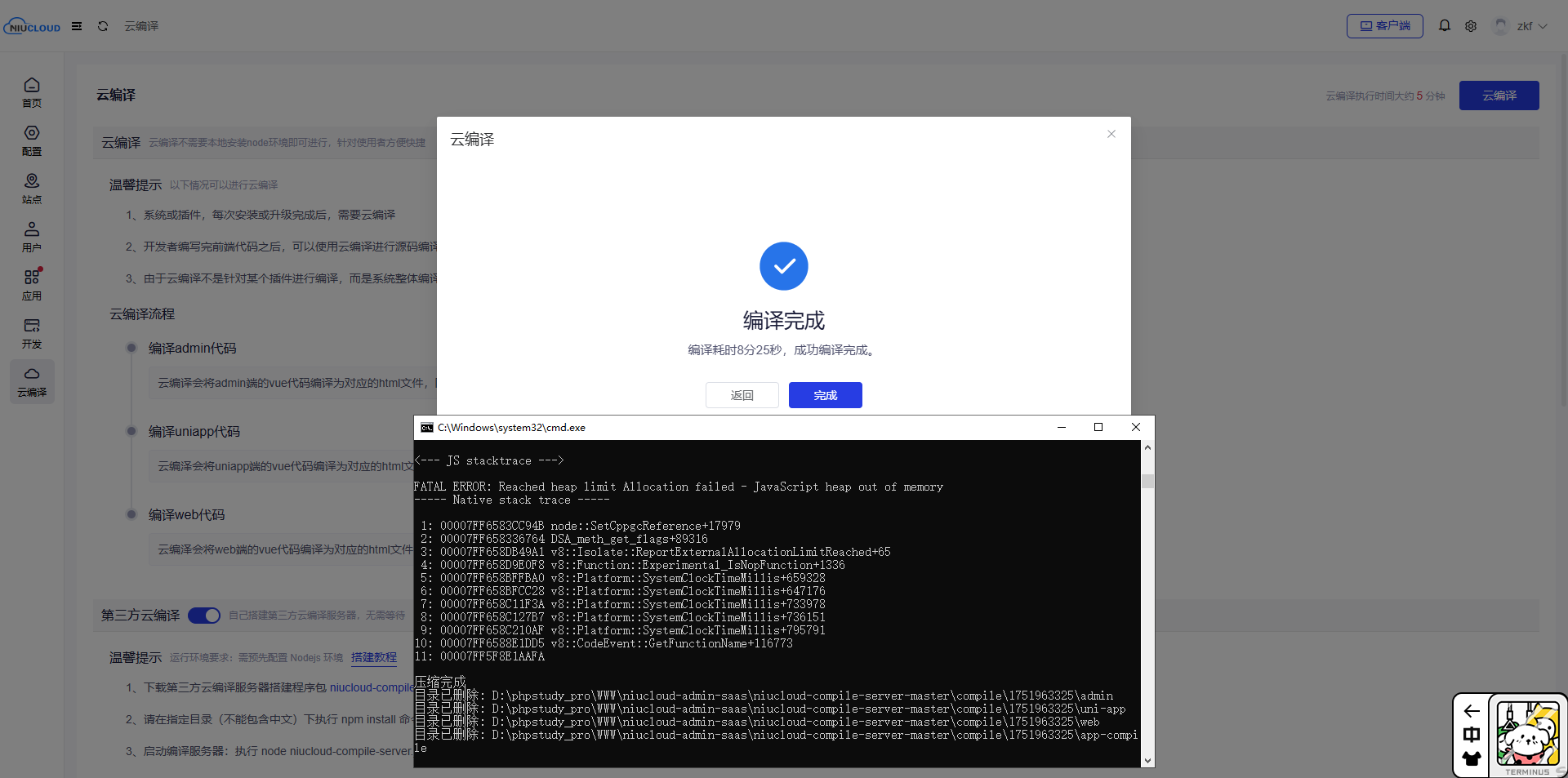注意:云编译执行时,请不要关闭node node niucloud-compile-server.js执行窗口