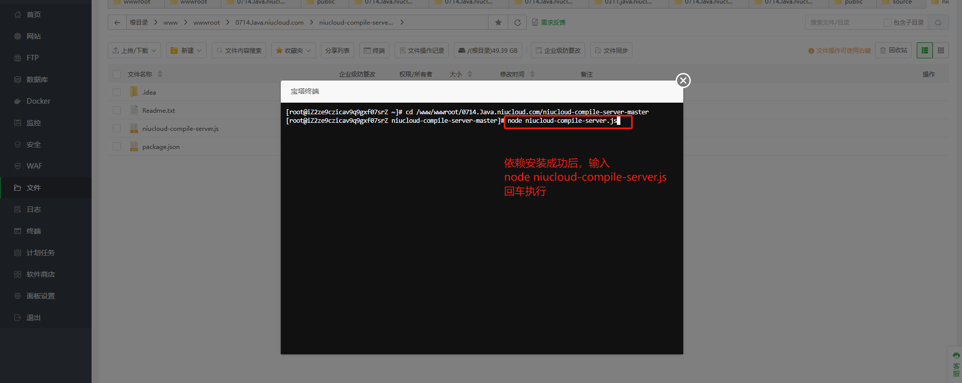 2.1依赖安装成功后,输入node niucloud-compile-server.js回车执行