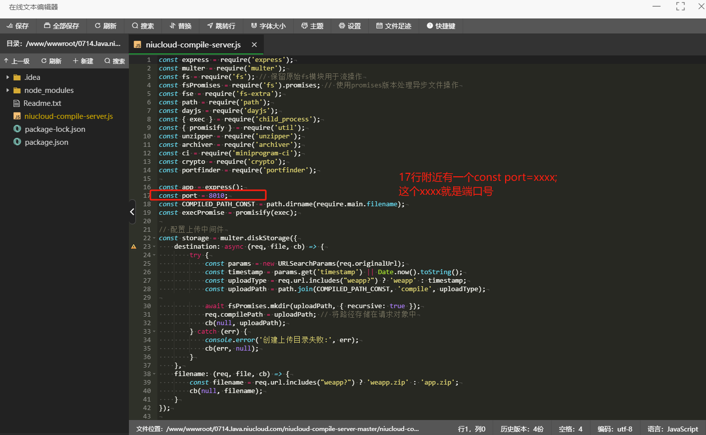 则需要打开niucoud-compile-server-master文件夹下的 niucloud-compile-server.js文件