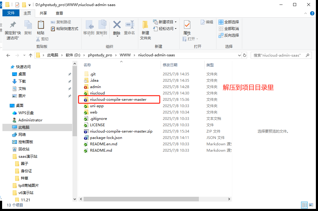 3.将下载好的程序包解压到本地,打开niucloud-compile-server-master