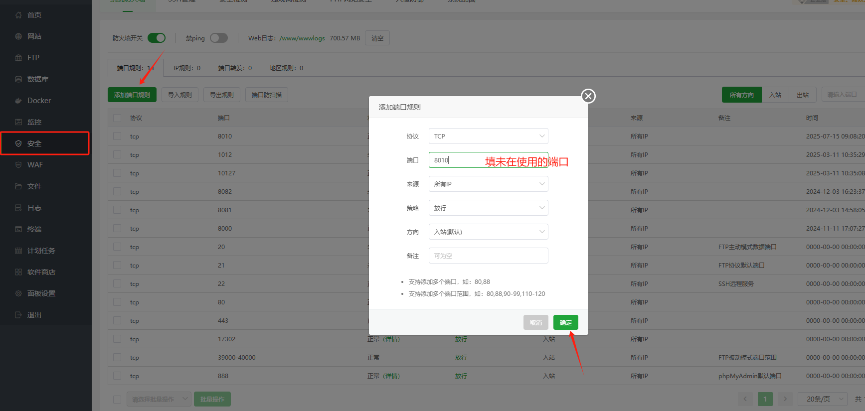 | 宝塔开通端口图示 | 服务器开通端口图示 |