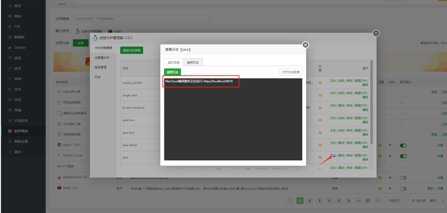 如果提示启动失败打开该进程的日志,如果报端口未开启或者端口冲突,则需要再继续阅读下文,如果启动成功则直接跳到1.3即可