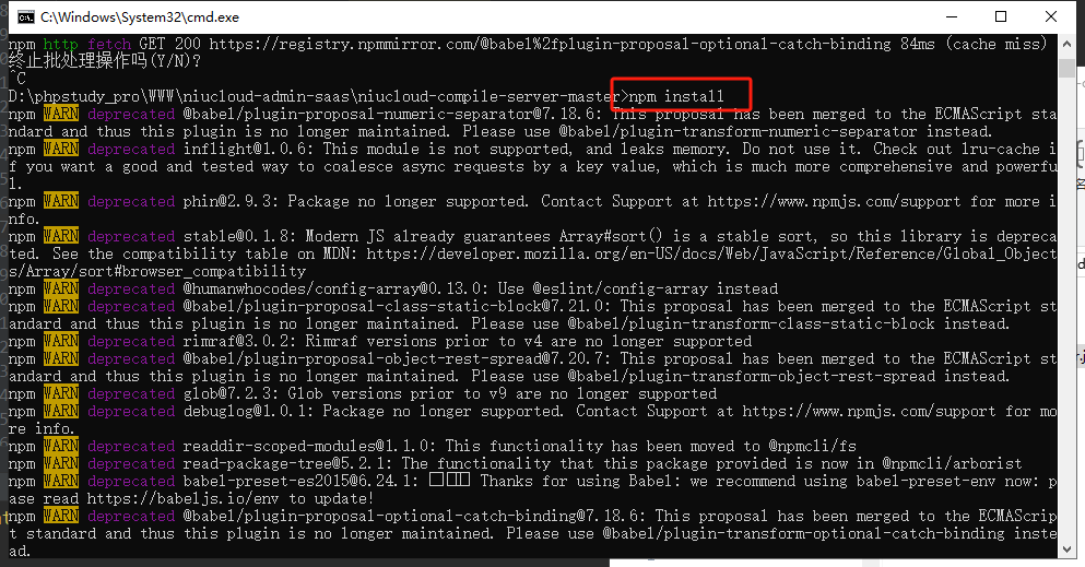 6.依赖安装成功后,输入node niucloud-compile-server.js,回车执行