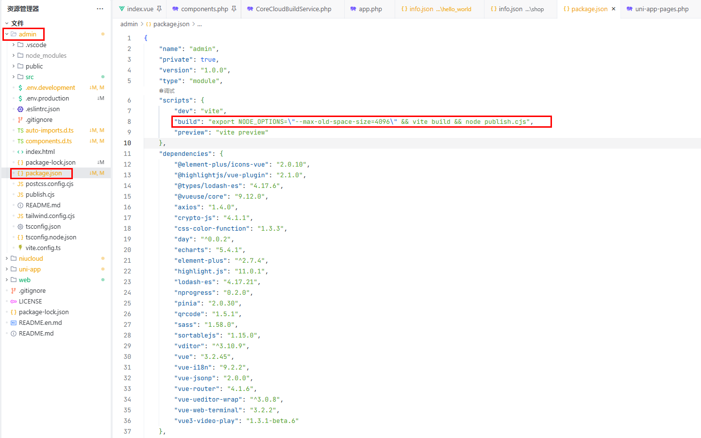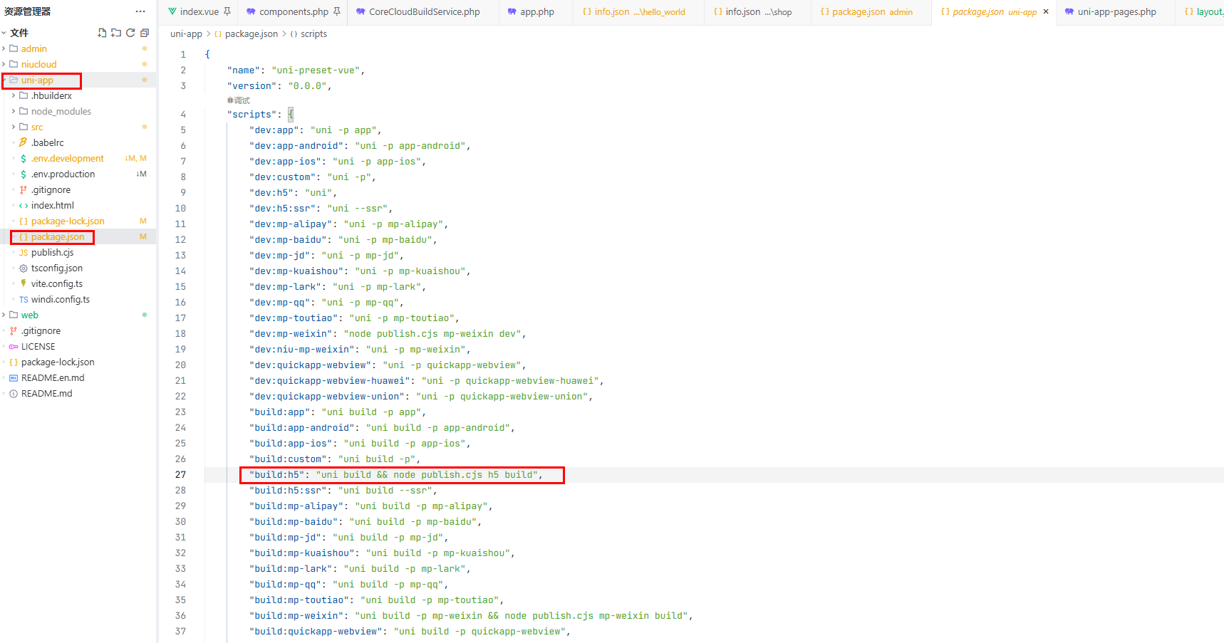 "build:h5": "export NODE\_OPTIONS=\"--max-old-space-size=8192\" && uni build && node publish.cjs h5 build",