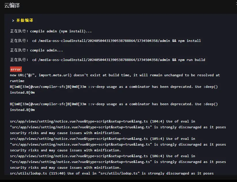 部分小伙伴购买插件/应用太多时,云编译时会有 js 报错,如图: